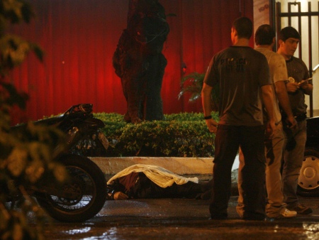 De acordo com a PM, seis tiros acertaram Luiz Paulo Viola, que morreu no local. A mãe de Roger foi levada para o Hospital Miguel Couto, na Gávea, também na zona sul. De acordo com o 23º BPM, o assaltante conseguiu fugir. O caso foi encaminhado para Divisão de Homicídios, na Barra da Tijuca, zona oeste do Rio de Janeiro.