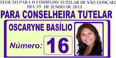 No dia 19 de Junho, não deixe de comparecer as urnas para dar um voto de confiança a Oscaryne Basílio, por todo trabalho desenvolvido no Conselho Tutelar.