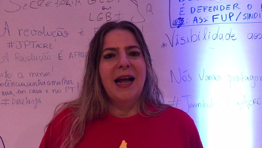 Gracileide Oliveira ” O Lula como presidente foi a melhor coisa que aconteceu pra gente. Eu tô gostando muito de ter o Congresso aqui hoje e tô usando os broches do PT pra pedir Fora Temer. Eu nunca quis ele lá. Quero mostrar isso porque quero Lula de volta”